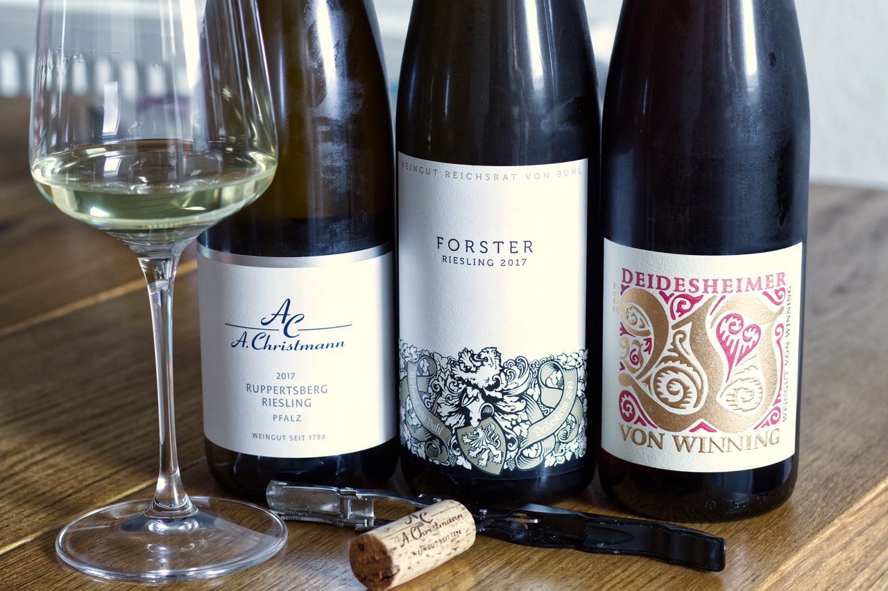Wir trinken aus dem Jahr 2017 drei Ortsweine aus der Pfalz: Deidesheimer Riesling vom Weingut von Winning, Forster Riesling vom Weingut Reichsrat von Buhl und Ruppertsberger Riesling vom Weingut Christmann