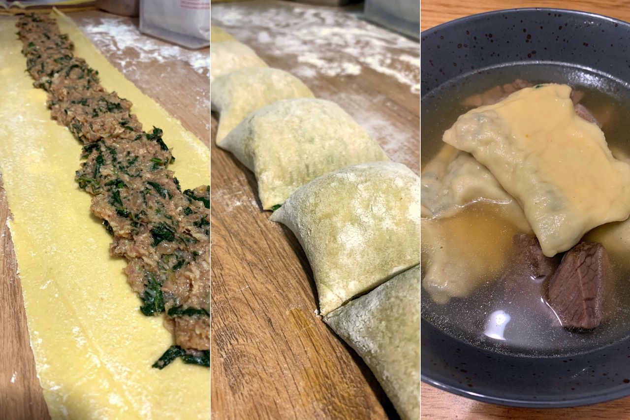 Nach einer Nacht im Kühlschrank wandelt sich das wieder. Der Wein wird erdiger, hat jetzt mehr Charakter. Knackiger in der Säure und das was am ersten Abend passiert ist, setzt sich fort. Der Gerbstoff packt kräftiger zu, da ist jetzt Kirsche, Zwetschge und ein paar dunkle Beeren. Das gefällt uns richtig gut. An diesem zweiten Abend kamen die Maultaschen auf den Tisch. Selbstgemacht und gefüllt mit Spinat, Rind und ein bisschen Käse in der (auch selber gekochten) Fleischbrühe. Dazu war Wein gar nicht eingeplant. Das aber sowieso noch vorhandene Glas hat jedoch erstaunlich gut gepasst. Die dann noch klarere Frucht ist eine tolle, zusätzliche Facette und ich kann mir vorstellen, dass es zu den mit Ei angebratenen Maultaschenresten einen Tag später sogar noch mehr Spaß gemacht hätte. Da war aber leider schon nichts mehr übrig.
