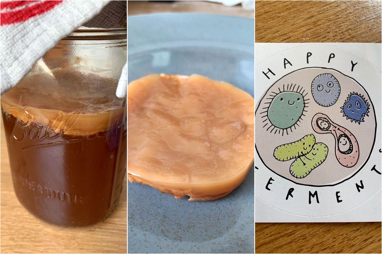 Zusätzlich zum Wein ist ein bisschen Staffelter Hof auch dauerhafter bei uns eingezogen. Im Titelbild lassen sich im Hintergrund schon zwei Gefäße erahnen in denen Kombucha vor sich hin gärt. Kombucha entsteht durch SCOBY (das ist der leicht widerlich aussehende Schleimding oben drauf) und genau diesen SCOBY haben wir aus einem kleinen Rest Kombucha Chichamorada aus schwarzem Mais von Yamile Abad gezogen. Der wiederum war Teil eines Staffelter Hof Verkostungspakets mit Wein und anderen Fermenten im April und das Weiterzüchten hat erstaunlich gut funktioniert. Über den klassichen Kombucha aus Tee hinaus eröffnet sich jetzt ein komplettes Kapitel in einem meiner liebsten Kochbücher der Kategorie “Spannend, aber doch nur in Teilen zum Nachkochen geeignet”, dem Noma Guide to Fermentation. Ein erstes Experiment mit Apfelsaft statt Tee steht im Titelbild. Weitere werden folgen.