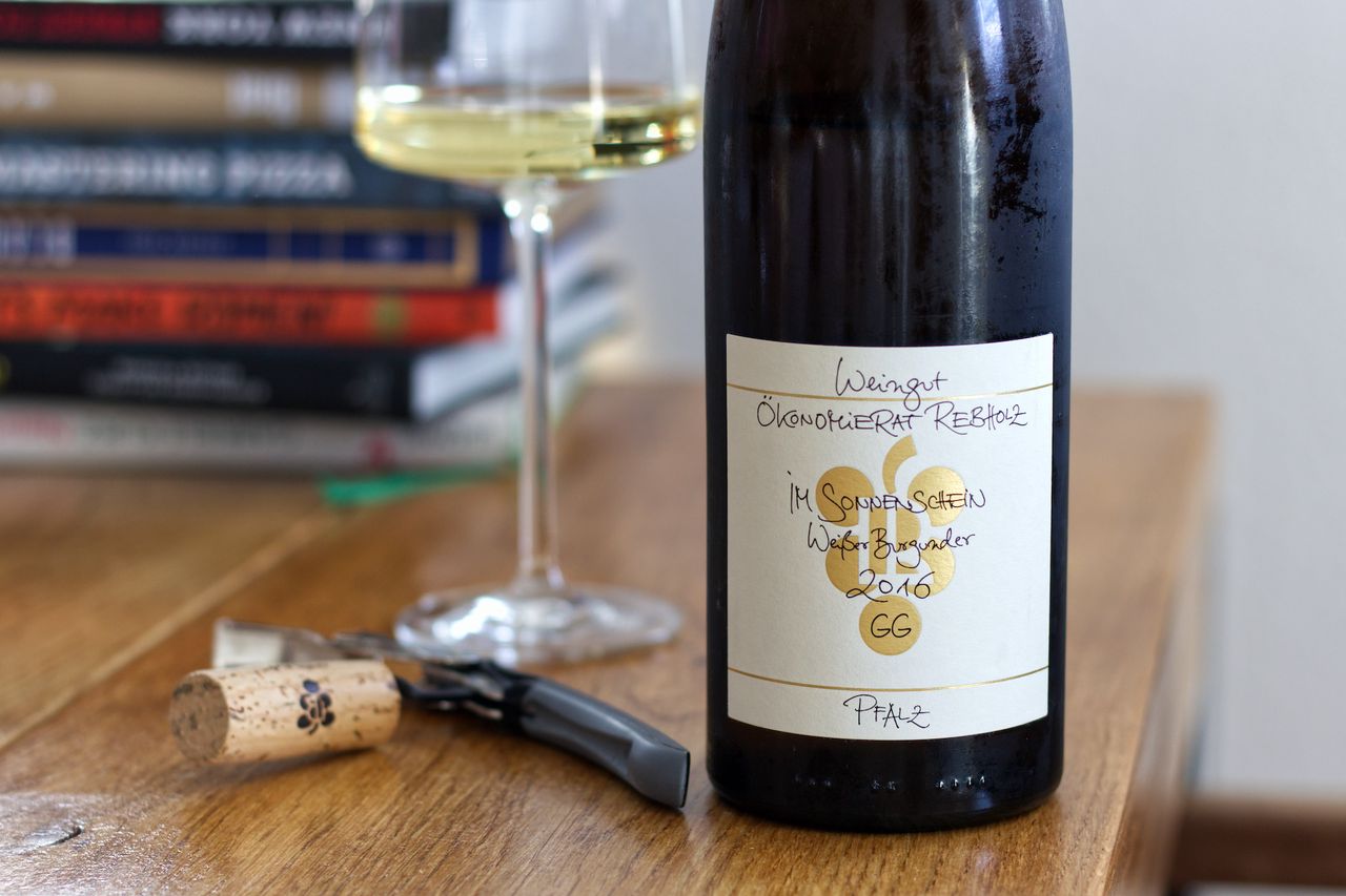 Diese Woche gibt es eine Flasche Weißer Burgunder Im Sonnenschein 2016 vom Weingut Ökonomierat Rebholz aus der Pfalz.