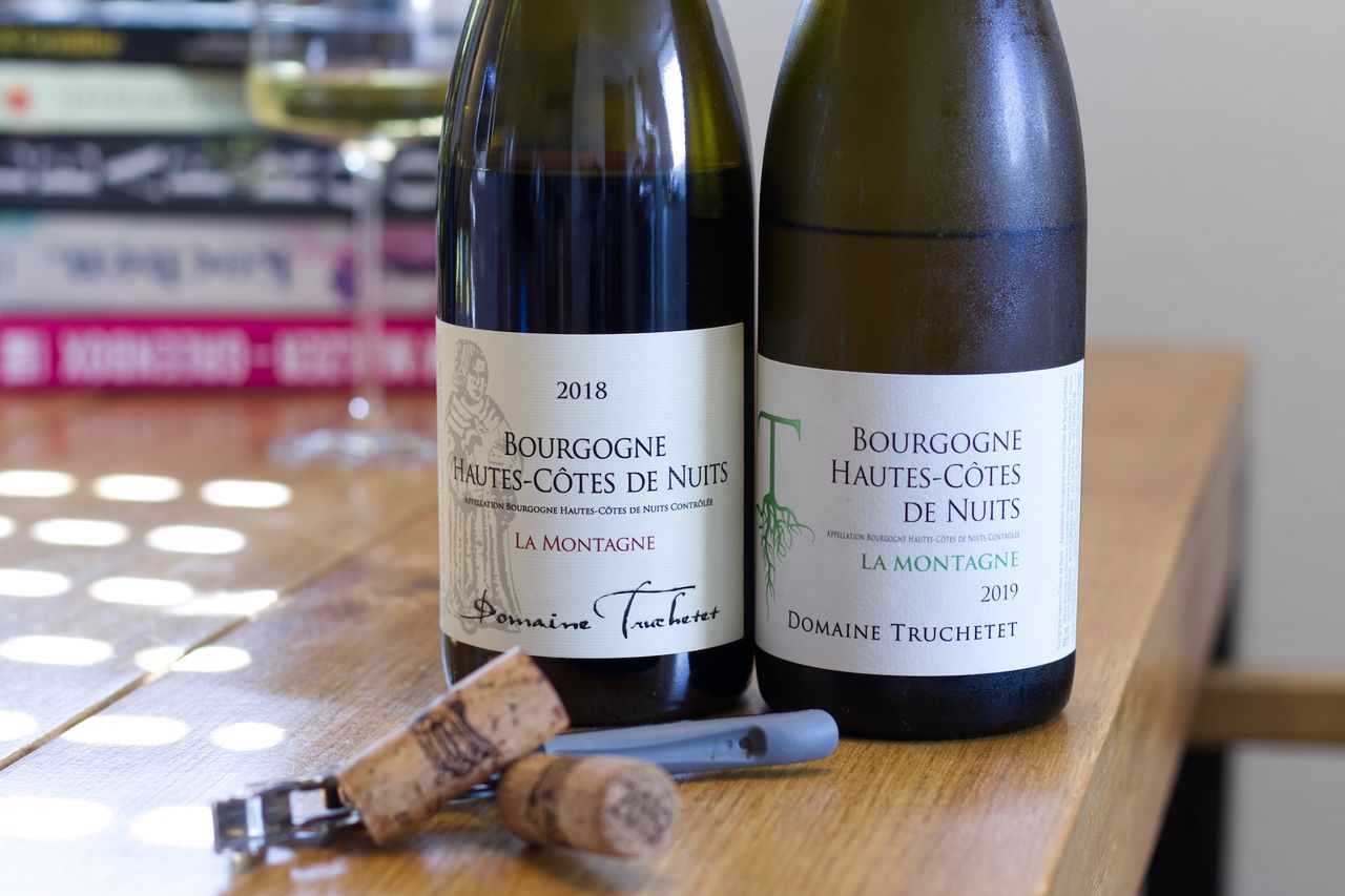 Wir bleiben erstmal im Burgund und trinken von der Domaine Truchetet Bourgogne Hautes-Côtes de Nuits La Montagne als Pinot Noir aus 2018 und als Chardonnay aus 2019.