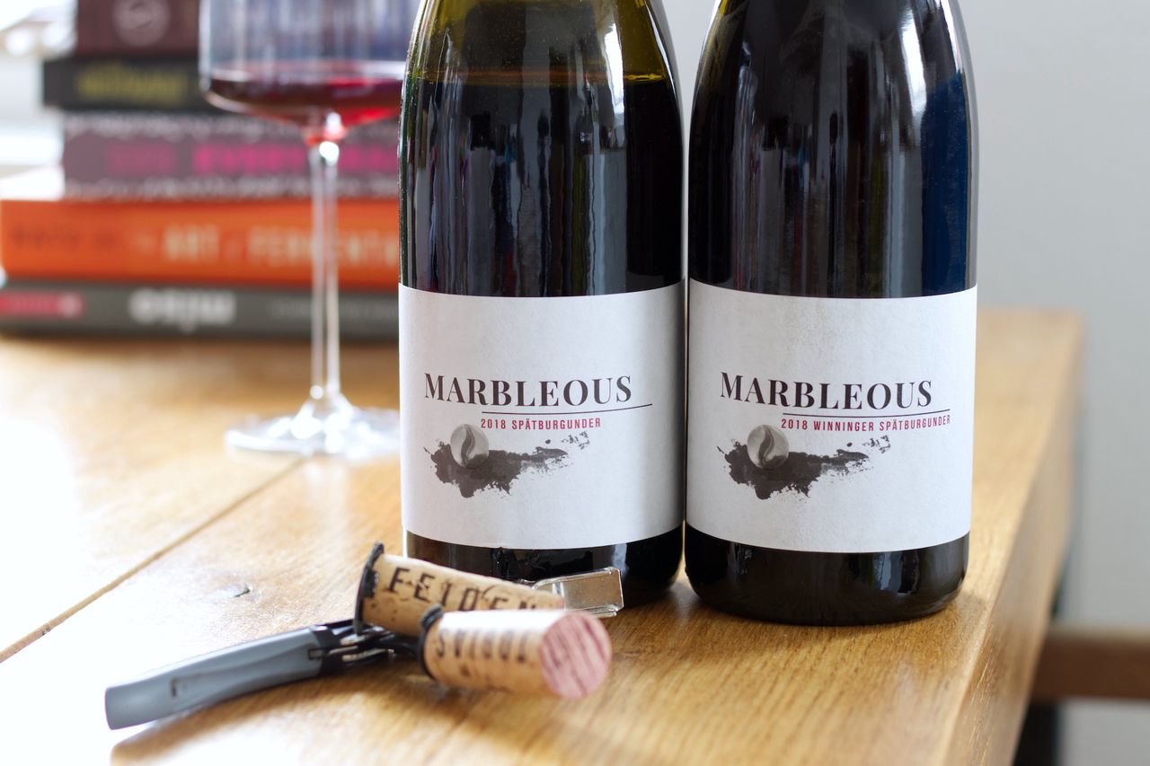 Wir trinken zu Weihnachten von Tobias Feiden und seinem Weingut Marbleous eine Flasche Spätburgunder Unfiltriert und eine Flasche Winninger Spätburgunder, jeweils 2018.