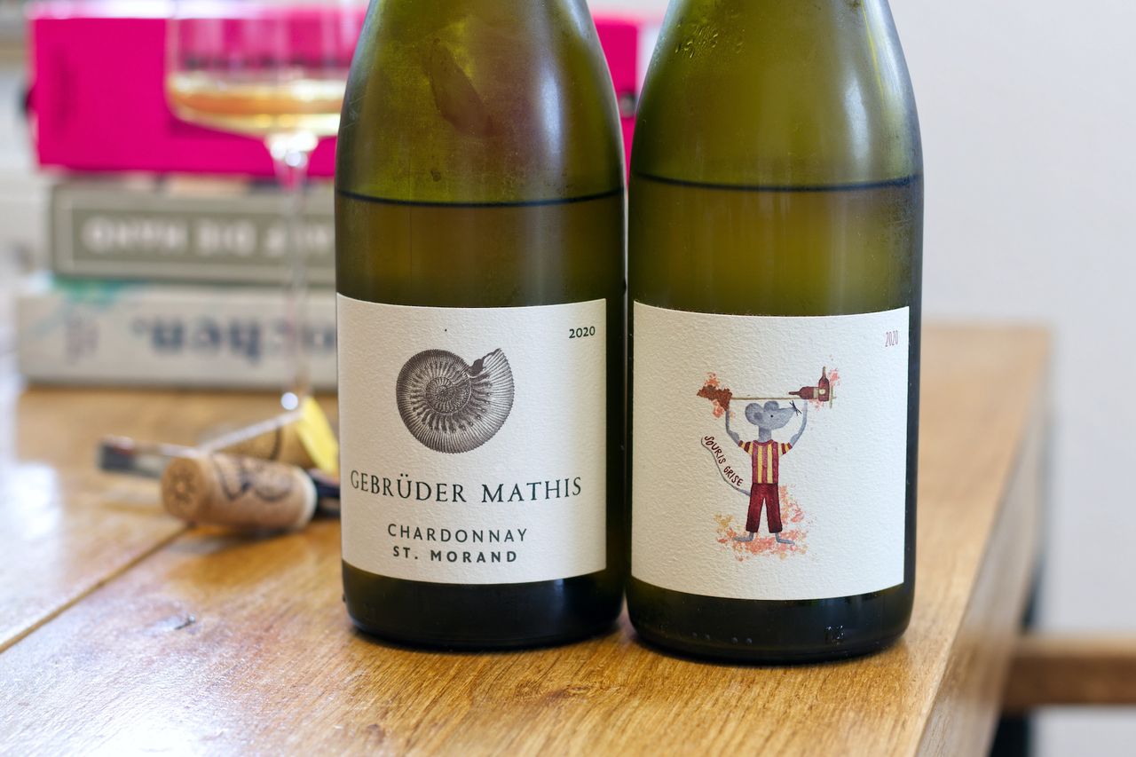 Wir trinken vom Weingut Gebrüder Mathis eine Flasche Chardonnay St. Morand und eine Flasche Souris Grise aus 2020.