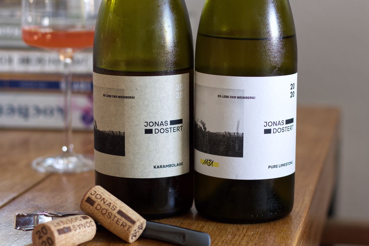 Wir trinken von der Obermosel eine Flasche Karambolage und eine Flasche Pure Limestone von Jonas Dostert.