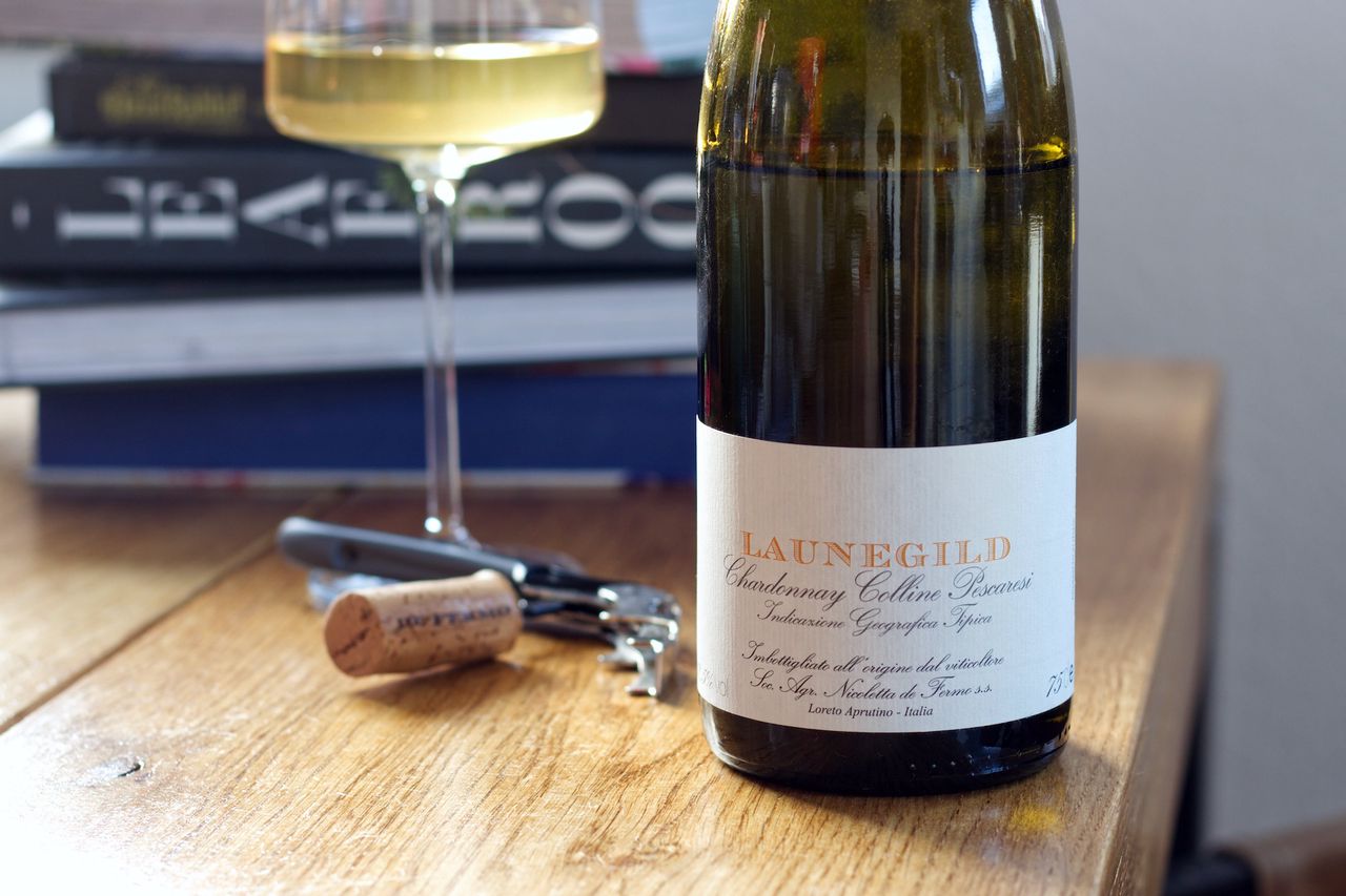 Wir trinken aus den Abruzzen vom Weingut De Fermo eine Flasche Launegild Chardonnay aus 2018.