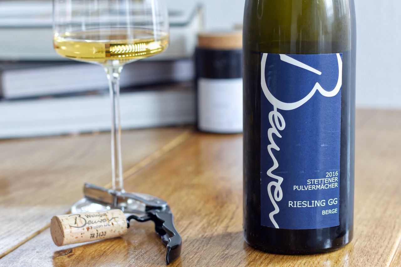 Wir trinken aus dem schönen Remstal eine Flasche Stettener Pulvermächer Riesling GG vom Weingut Beurer aus dem Jahr 2016.