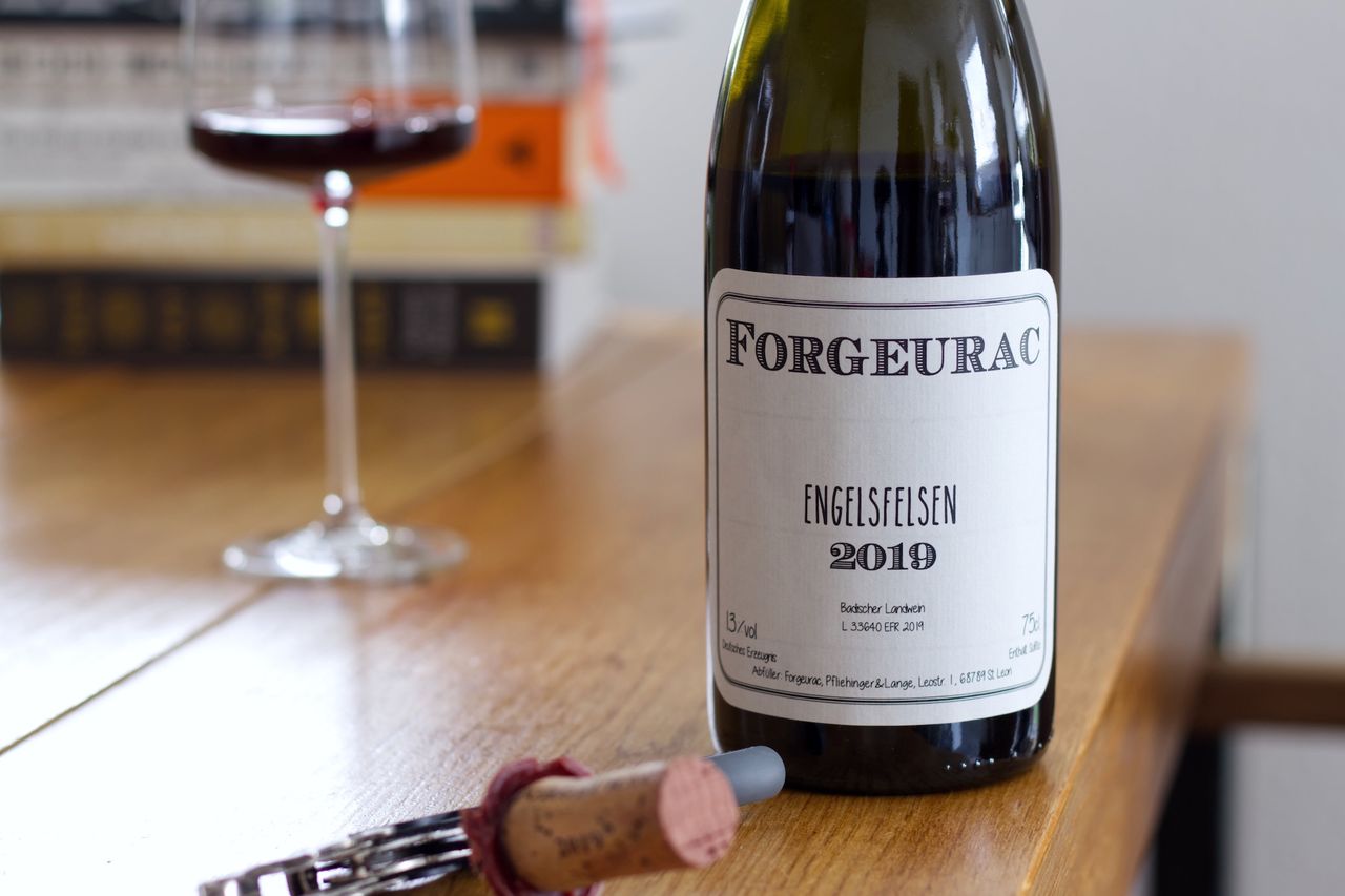 Wir kämpfen uns durch die Wachskapsel einer Flasche Forgeurac Engelsfelsen 2019 Spätburgunder und werden für die Mühe mehr als belohnt.