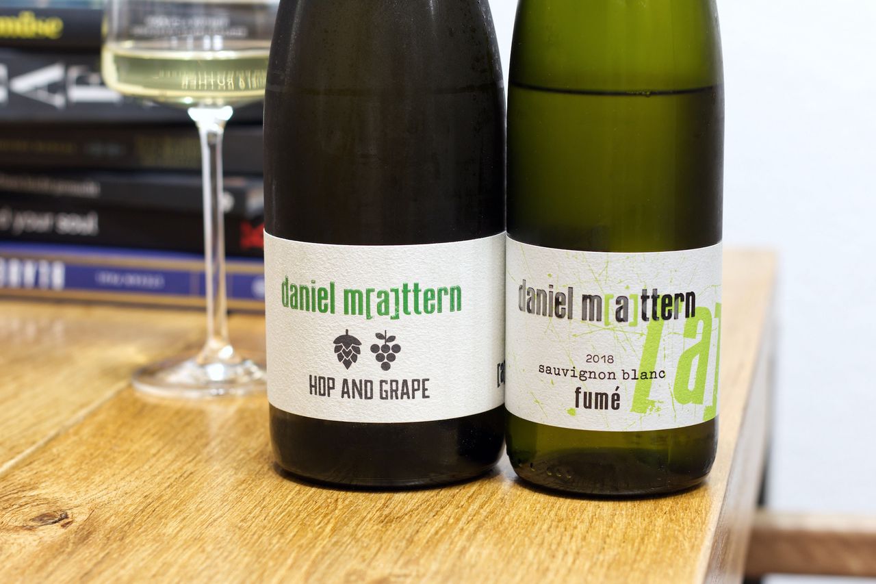 Wir trinken zwei Flaschen Sauvignon Blanc von Daniel Mattern. Einmal als Fumé 2018 und einmal als Blubber, der mit Hopfen aromatisiert wurde.