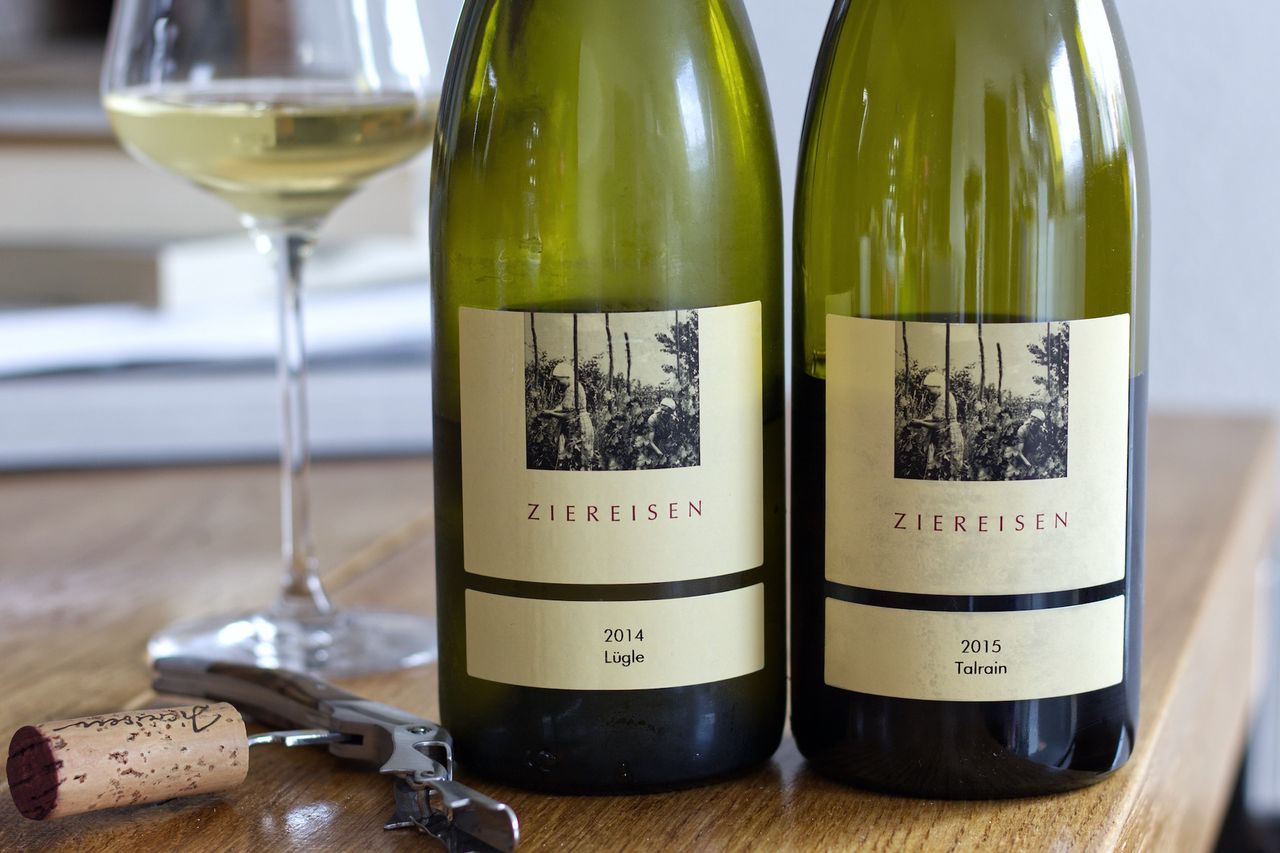 Wir trinken zwei Weine vom Weingut Ziereisen in Baden: Den Weissburgunder Lügle aus 2014 und den Spätburgunder Talrain aus 2015.
