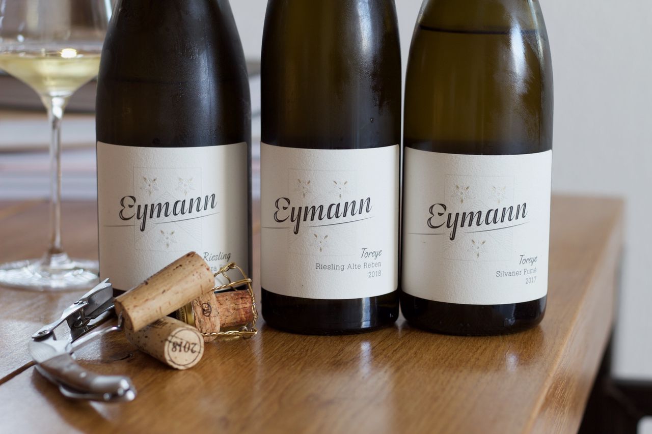Wir trinken drei Weine vom Weingut Eymann aus Gönnheim: Einen Riesling Sekt Extra Brut, einen Silvaner Fumé aus 2017 und einen Riesling Alte Reben aus 2018.