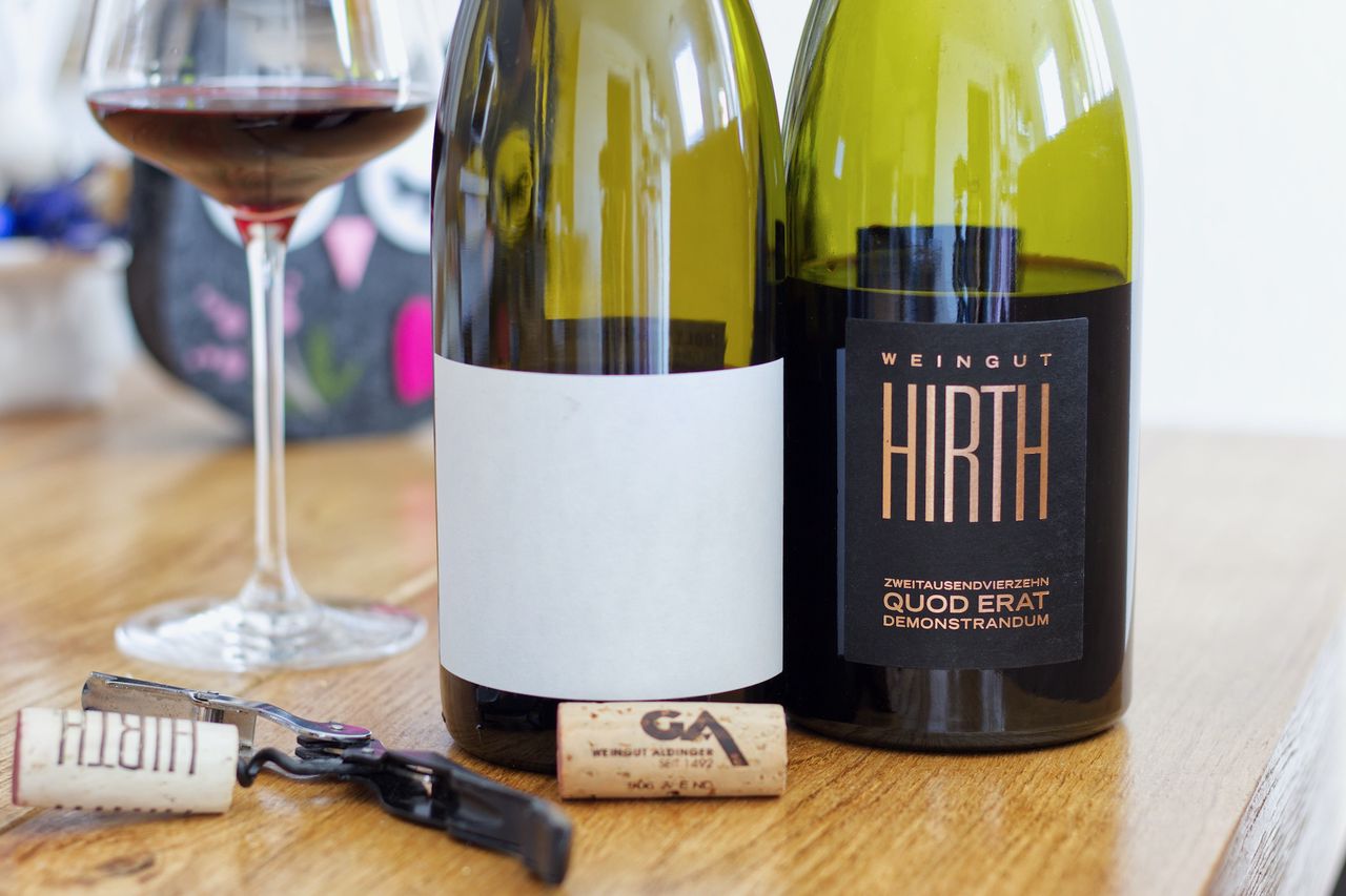 Wir trinken vom Weingut Aldinger den Trollinger Sine aus 2018 und vom Weingut Hirth den Quod Erat Demonstrandum aus 2014.