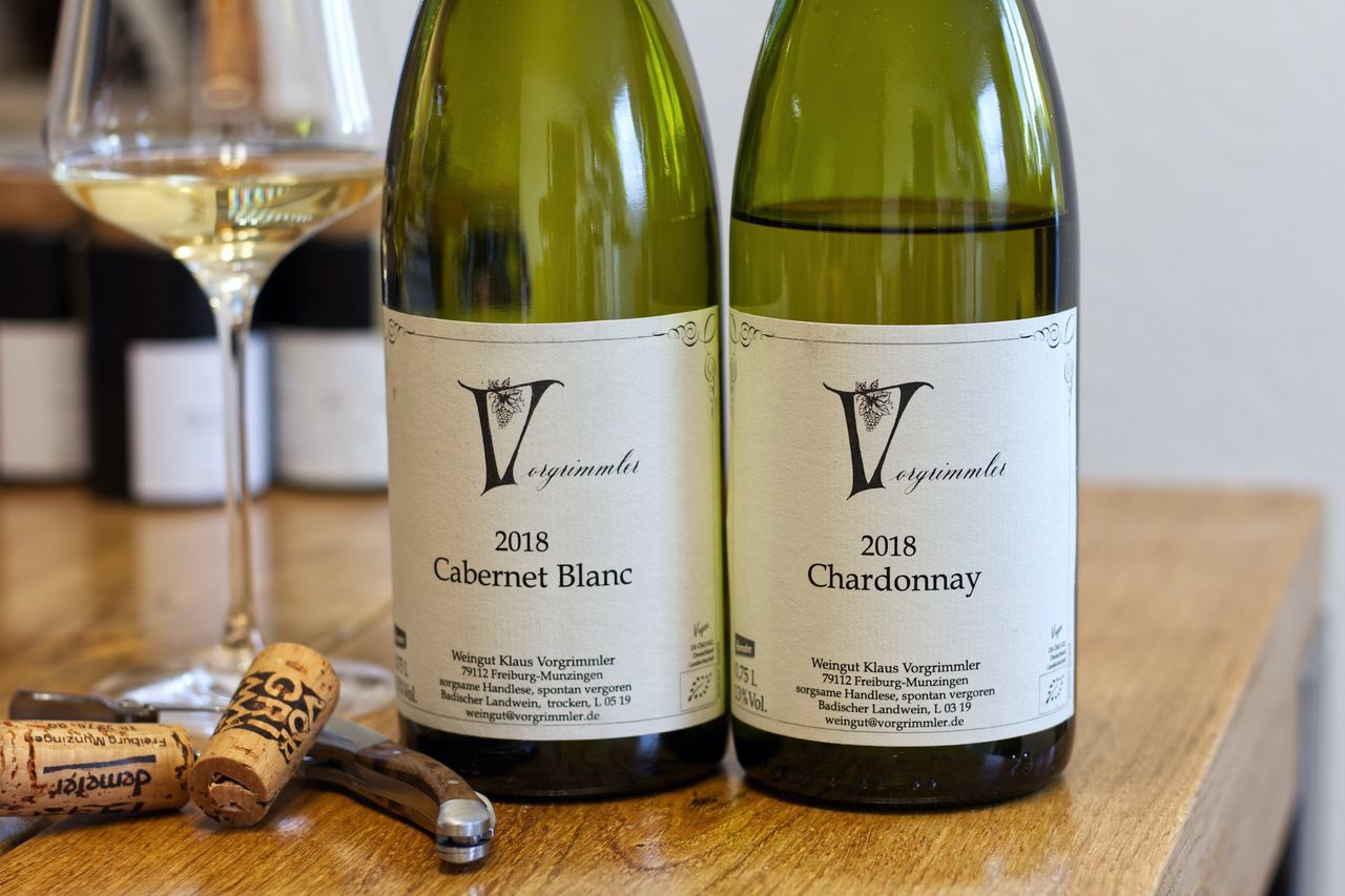 Wir trinken vom Weingut Vorgrimmler einen Chardonnay und einen Cabernet Blanc aus dem Jahr 2018.