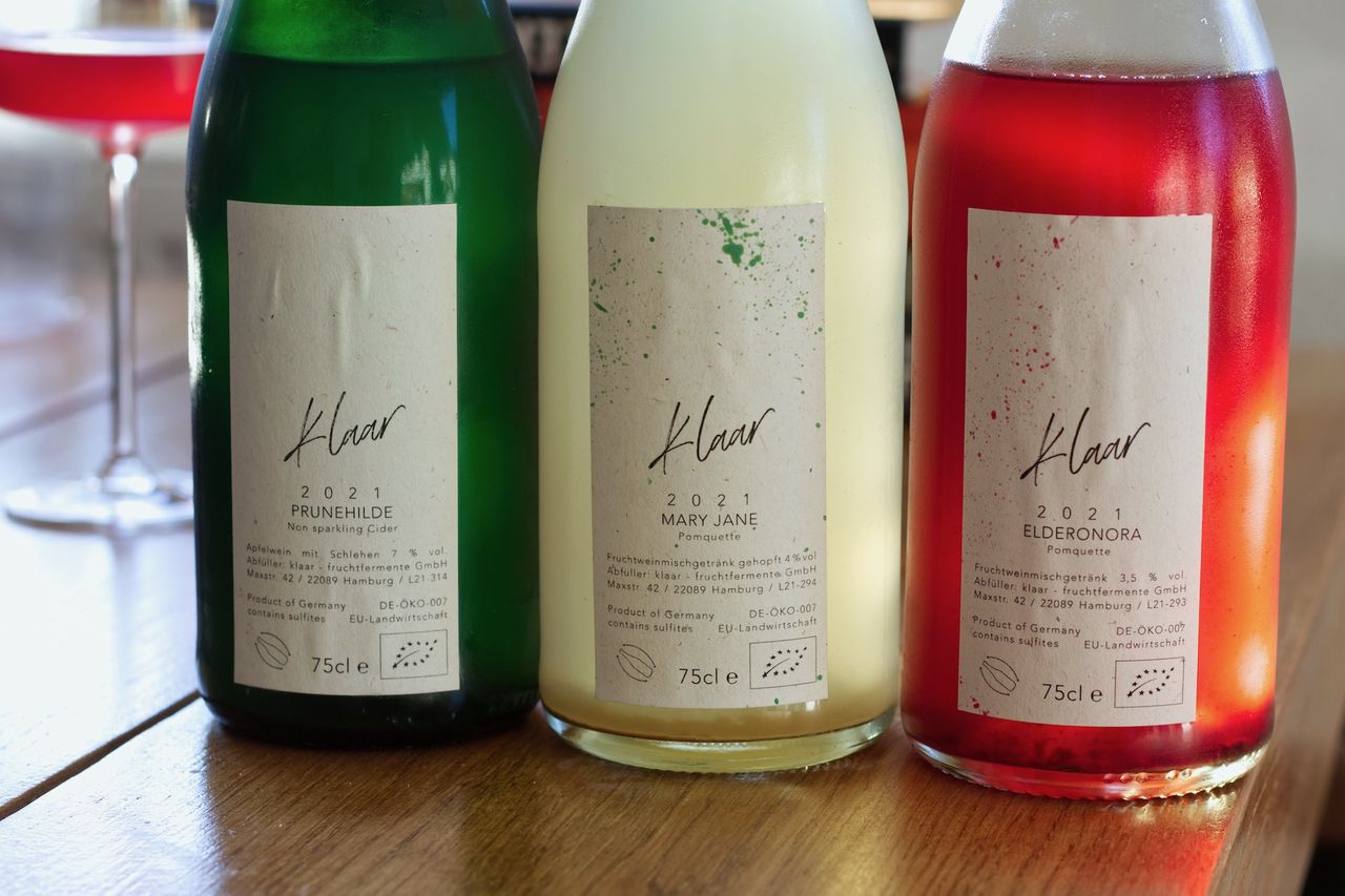 Wir trinken von Klaar Fruchfermente eine Flasche Prunehilde 2021, eine Flasche Mary Jane 2021 und eine Flasche Elderonora 2021.
