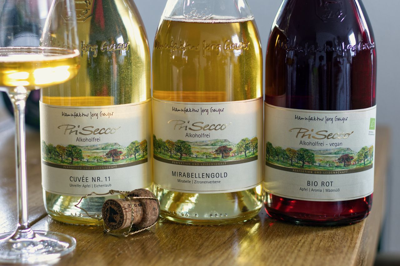 24.1.2021Drei Flaschen Jörg GeigerWir trinken drei Flaschen alkoholfreien PriSecco von Jörg Geiger: Mirabellengold, Bio Rot und die Cuvee Nr. 11.Lesen