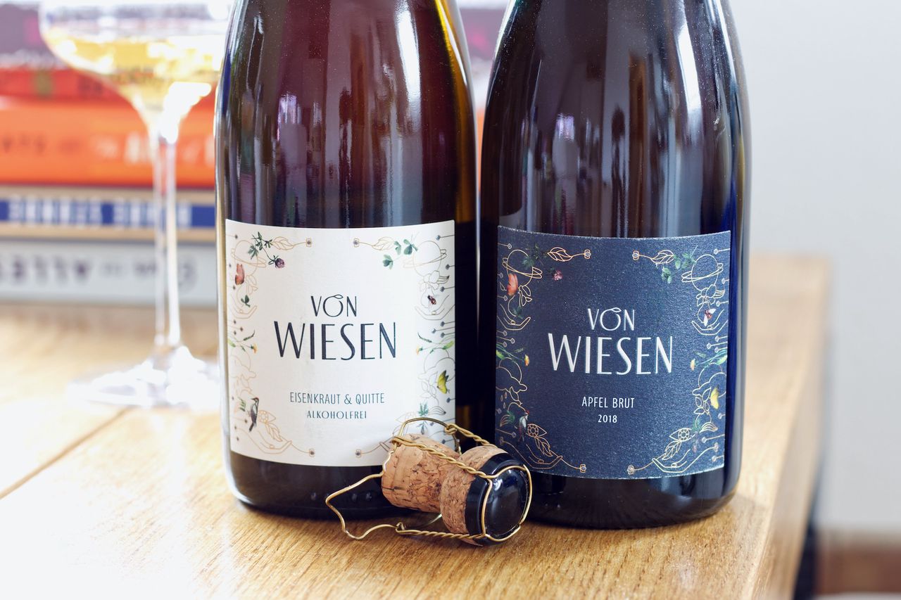 Wir trinken vom Obstschaumweinprojekt von Niko Brandner eine alkoholfreie Flasche Eisenkraut und Quitte und eine Apfel Brut aus 2018.