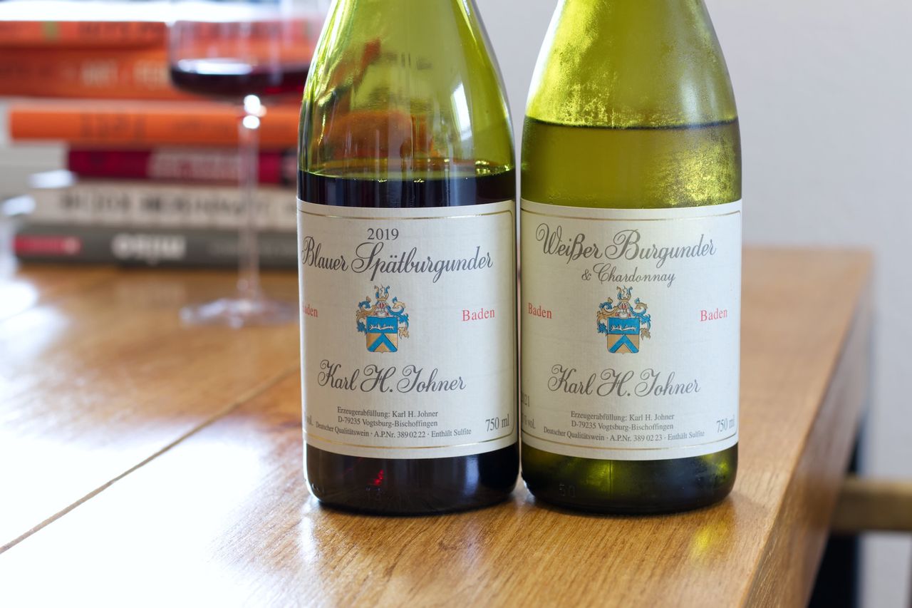 Wir trinken vom Weingut Johner aus Baden eine Flasche Weisser Burgunder und Chardonnay 2021 und einen blauen Spätburgunder aus 2019.