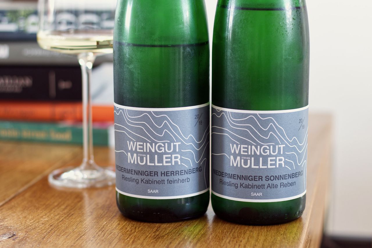 Wir trinken aus den Niedermenniger Lagen Herrenberg und Sonnenberg zwei Flaschen Riesling Kabinett 2018 von Stefan Müller.