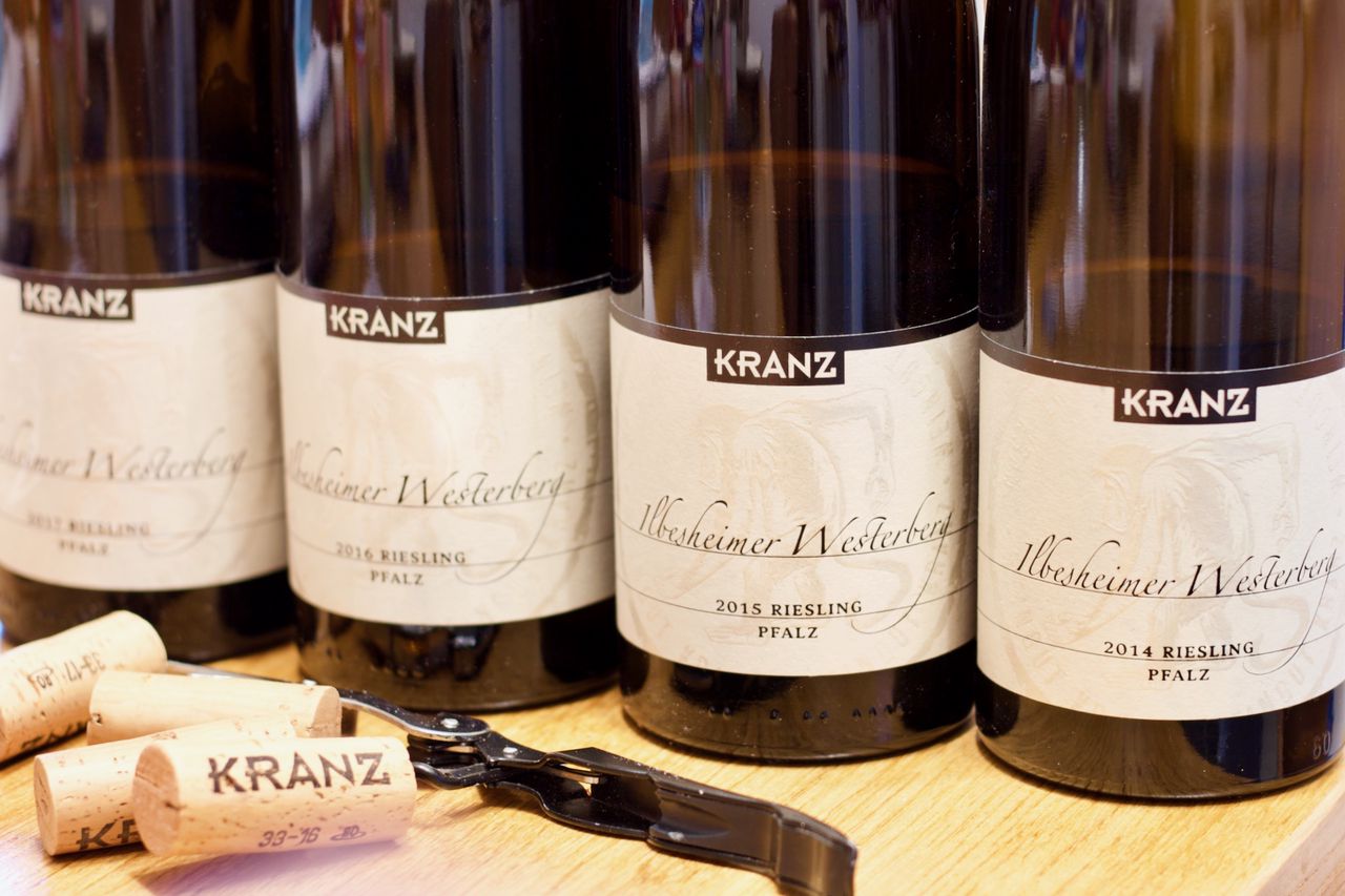 Wir trinken eine kleine Vertikale vom Weingut Kranz aus dem Ilbesheimer Westerberg. Rieslinge aus den Jahren 2014 bis 2017.