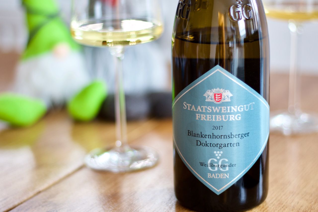Wir trinken einen Weissburgunder aus dem Blankenhornsberger Doktorgarten vom Staatsweingut Freiburg aus dem Jahr 2017, ein Großes Gewächs.